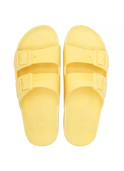 Our sandals are entirely made of PVC, recyclable plastic. Crushed, micronized, regenerated or powdered, PVC plastic waste comes back to life to transform itself once again into a raw material. 100% recyclable, PVC is increasingly recycled. Let's preserve the environment, this is the spirit adopted by Cacatoès! Type: Womens Sandals Candy scented Made in Brazil Sustainable PVC Machine washable Artificial buckles Heat resistant Waterproof Non-slippery Light Sturdy Wear them with socks Made with love