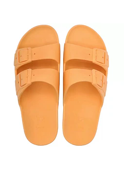 Our sandals are entirely made of PVC, recyclable plastic. Crushed, micronized, regenerated or powdered, PVC plastic waste comes back to life to transform itself once again into a raw material. 100% recyclable, PVC is increasingly recycled. Let's preserve the environment, this is the spirit adopted by Cacatoès! Candy scented Made in Brazil Sustainable PVC Machine washable Artificial buckles Heat resistant Waterproof Non-slippery Light Sturdy Wear them with socks Made with love