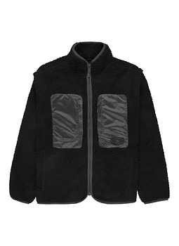 Features Collection: Lineguide collection Fabric: Polyester mid weight sherpa fabric [270 g/m2] Fit: Boxy fit Neck: Mock neck Sleeves: Long sleeves Pockets: Chest zip pockets Branding: PVC patch on left chest pocket Other Features: Contrast ripstop patch pockets with nylon coil zipper with bungee puller closures at chest Removable sleeves to convert from a jacket to a vest Nylon coil open ended zipper and poplin puller at CF placket Lycra binding around neck, center front, hem, and sleeve openings One CW has allover print Composition [Main Fabric] 100% Polyester